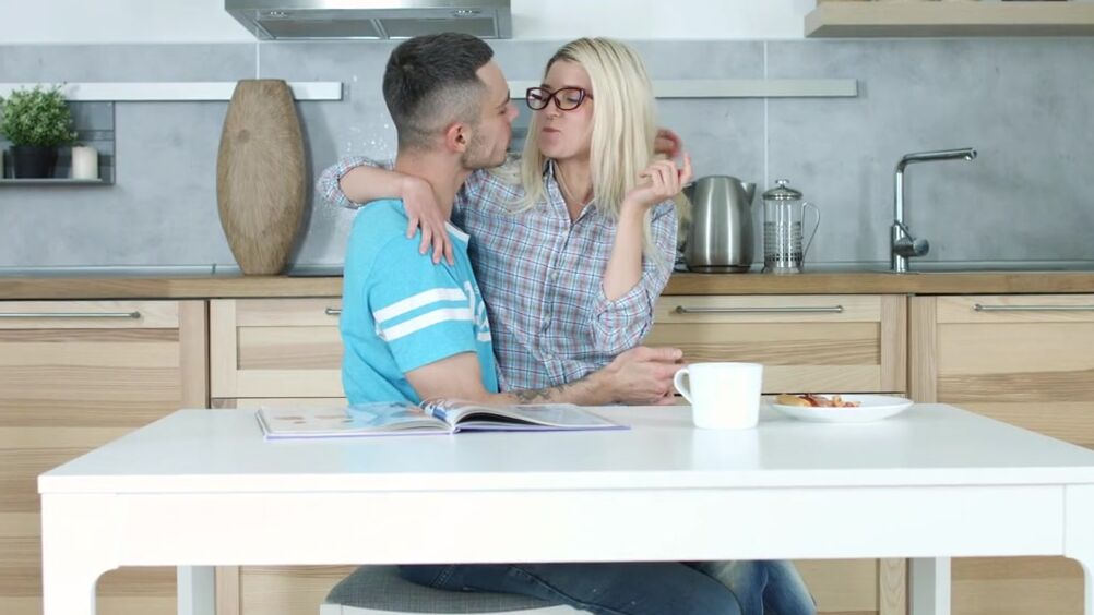 Парень натянул на член блондинку в очках на кухне